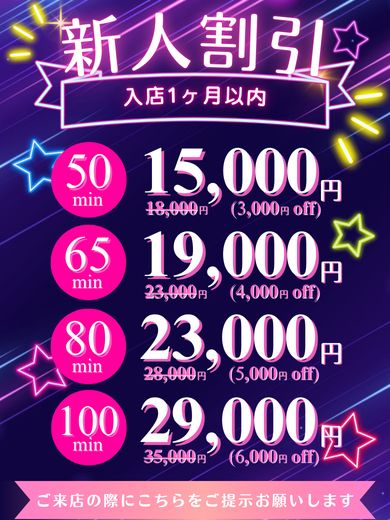 入店1ヶ月以内の割引対象の女の子です。